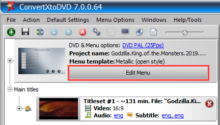 To edit the DVD menu, click Edit Menu.