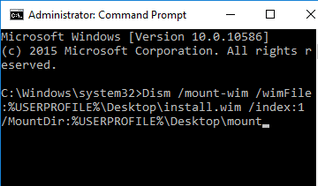 Dism /mount-wim /wimFile:%USERPROFILE%\Desktop\install.wim /index:1 /MountDir:%USERPROFILE%\Desktop\mount