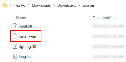 - In the sources folder, you will find an install.wim file. Copy this file to your desktop.