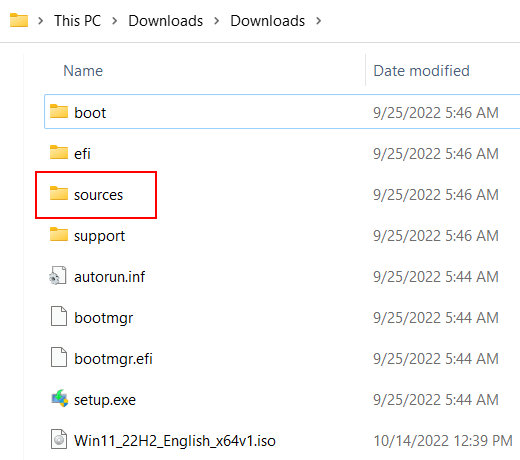 - Open the sources folder of your unzipped (extracted) ISO file.